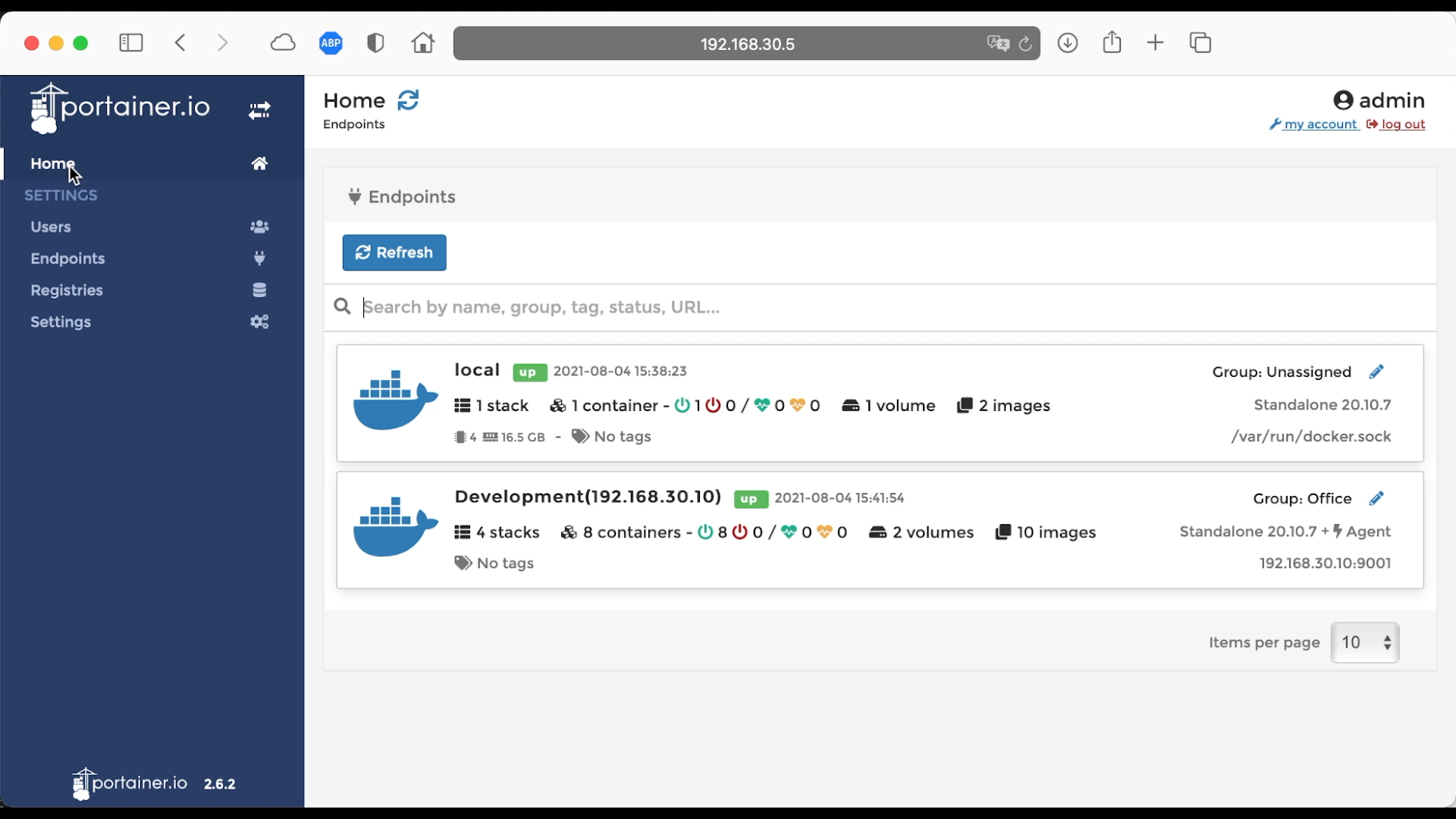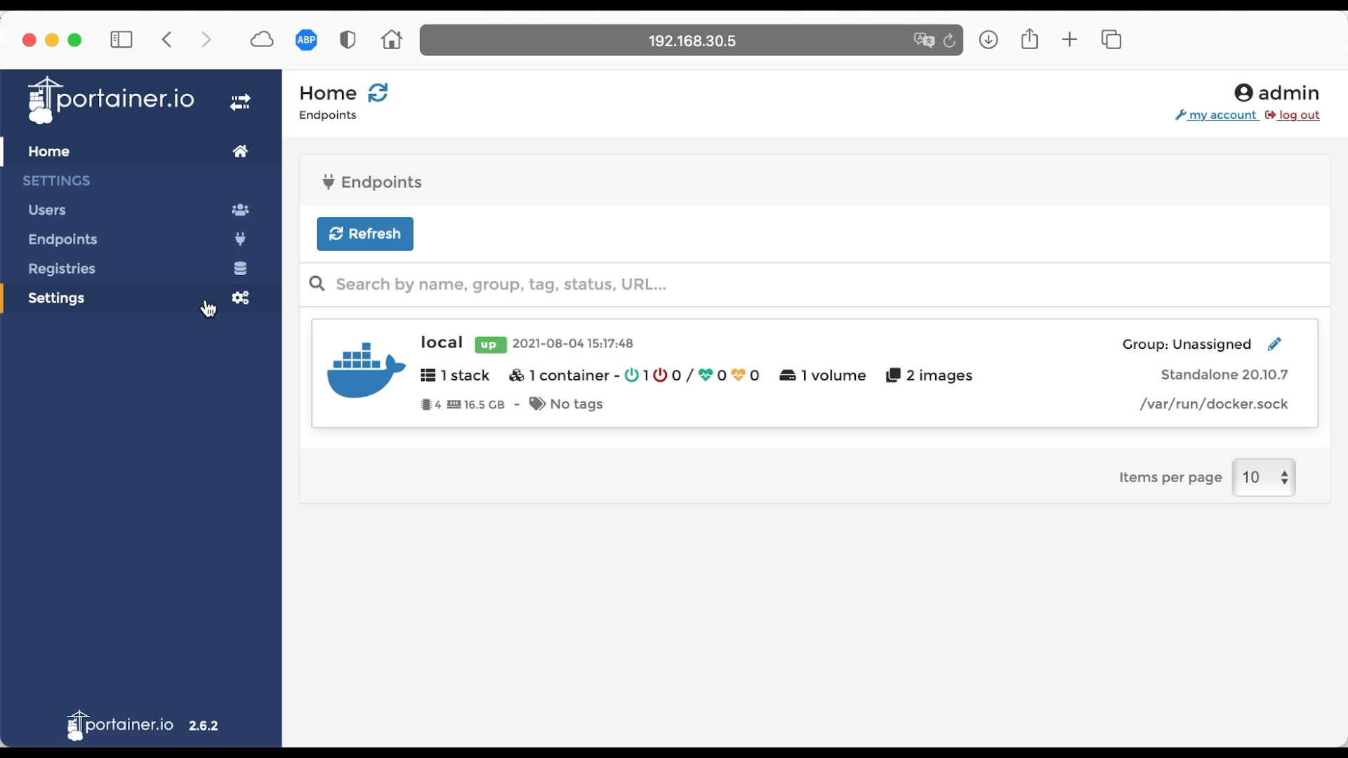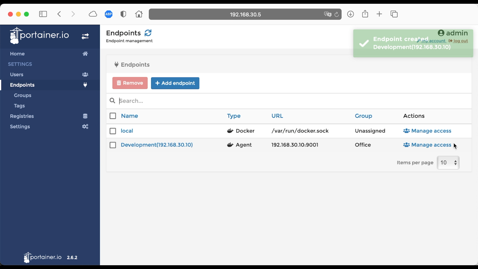 添加代理 Docker,左边菜单点击 Endpoints,然后点击 Add endpoint